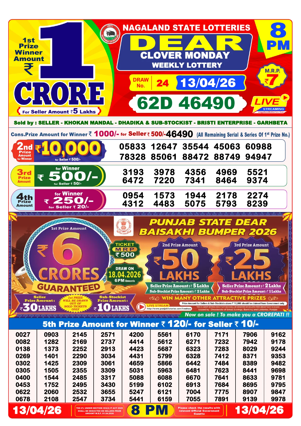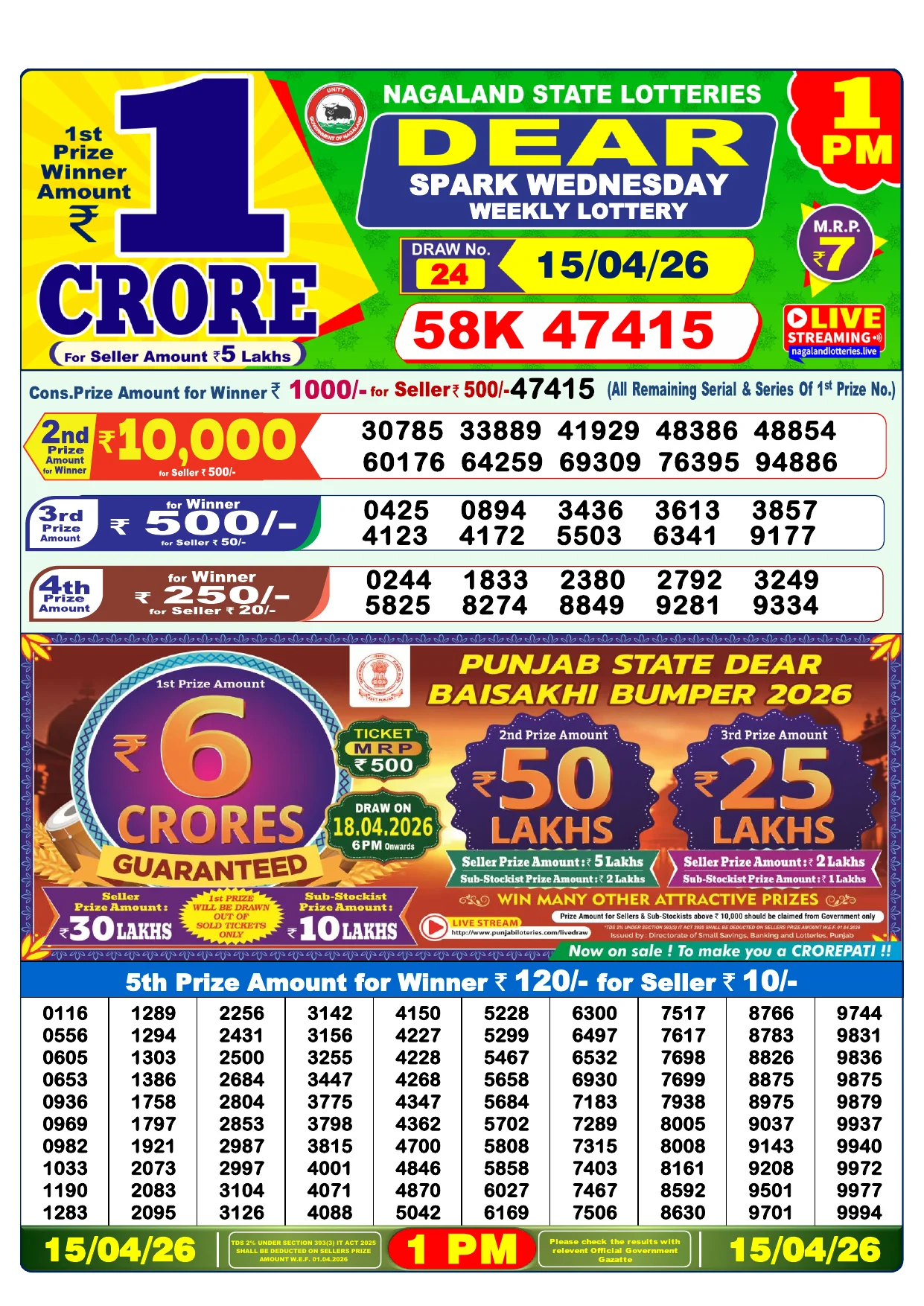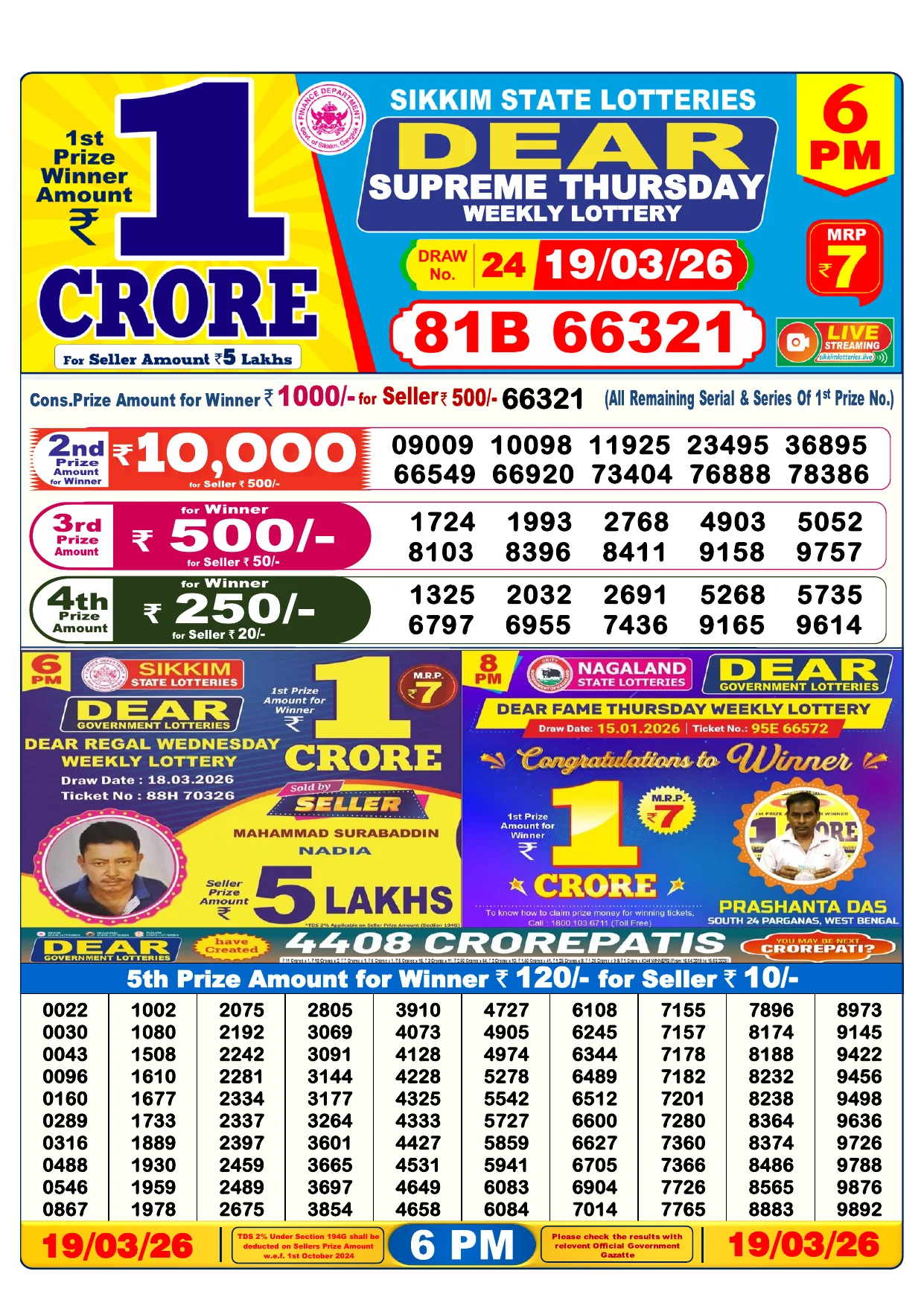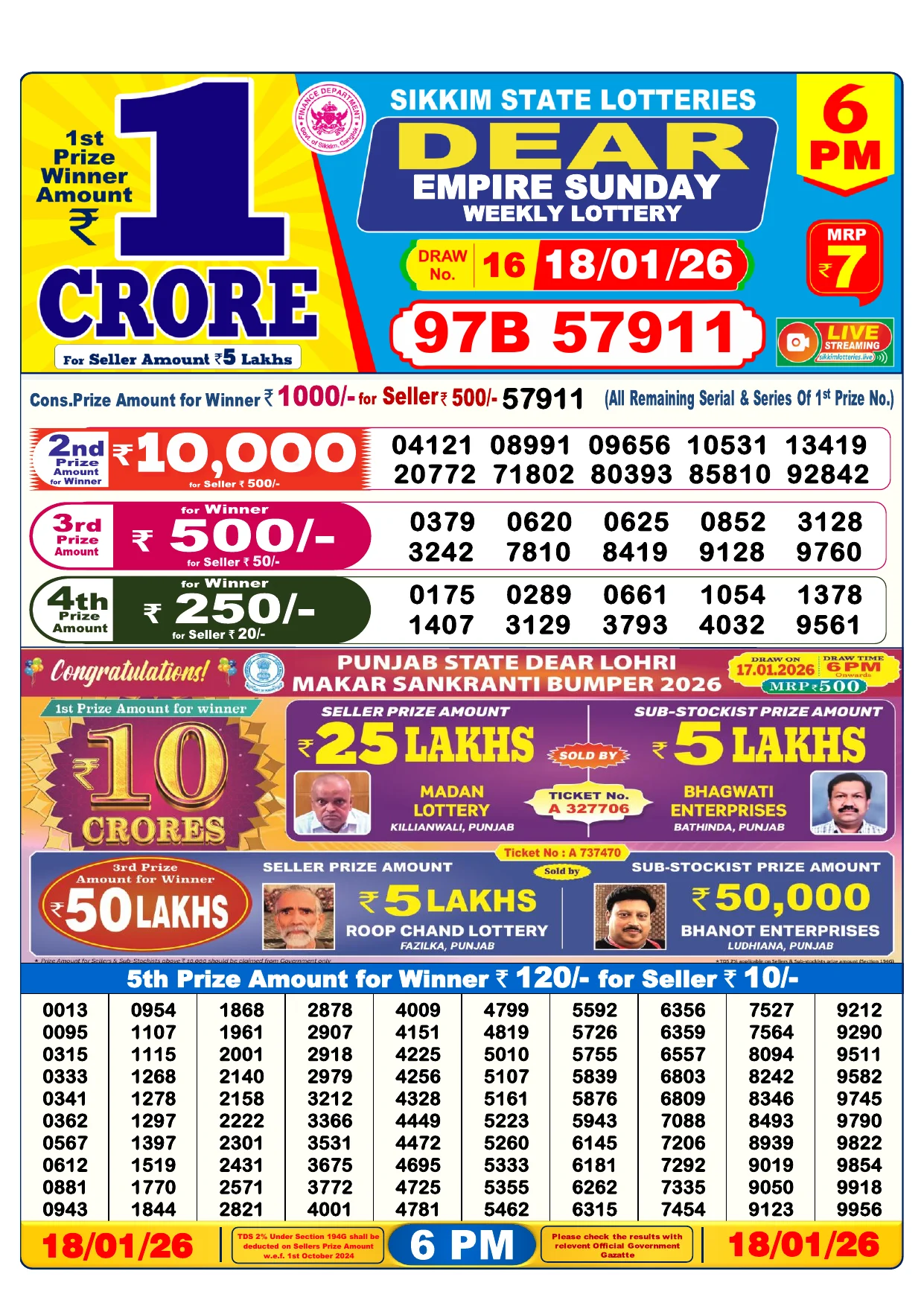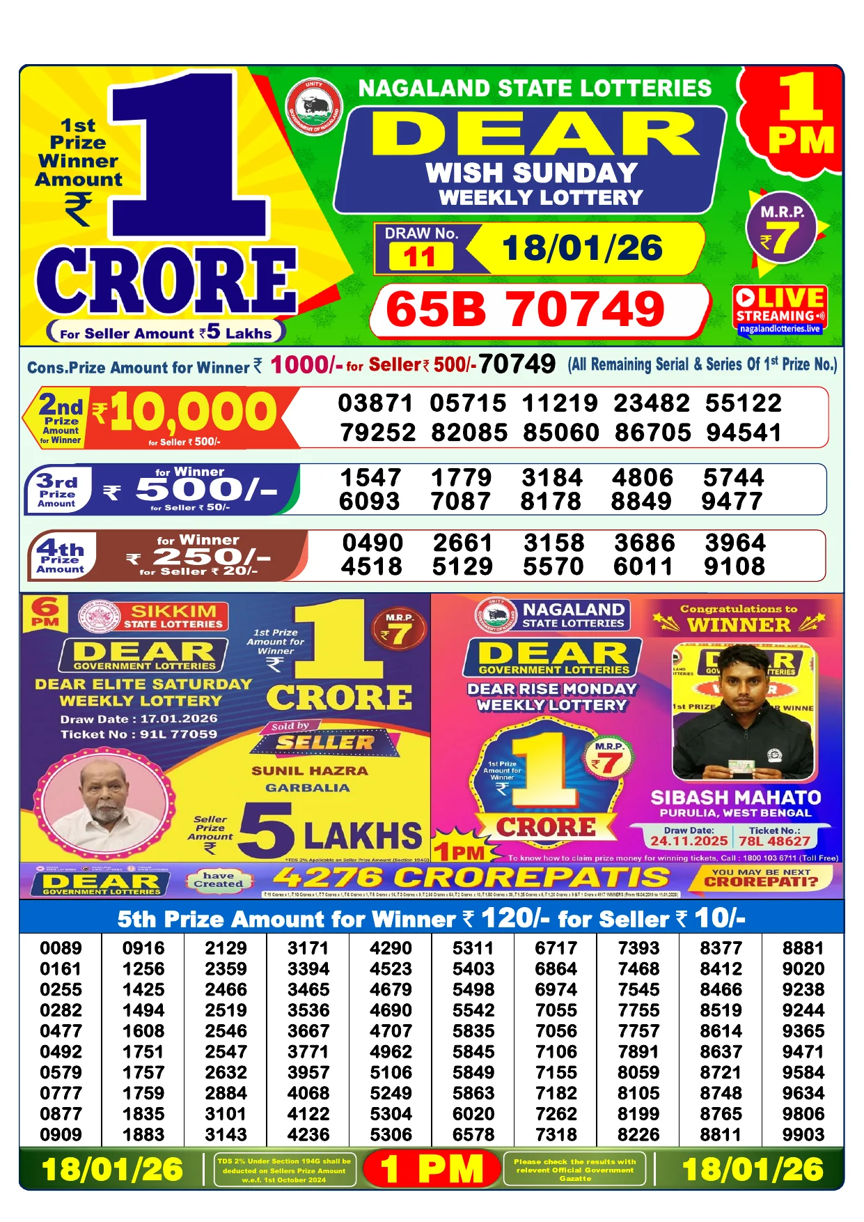 Note: Purchase of lottery using this website is strictly prohibited in the states where lotteries are banned, We are providing only India's leading lottery results, Age 18 years to play online lottery tickets.