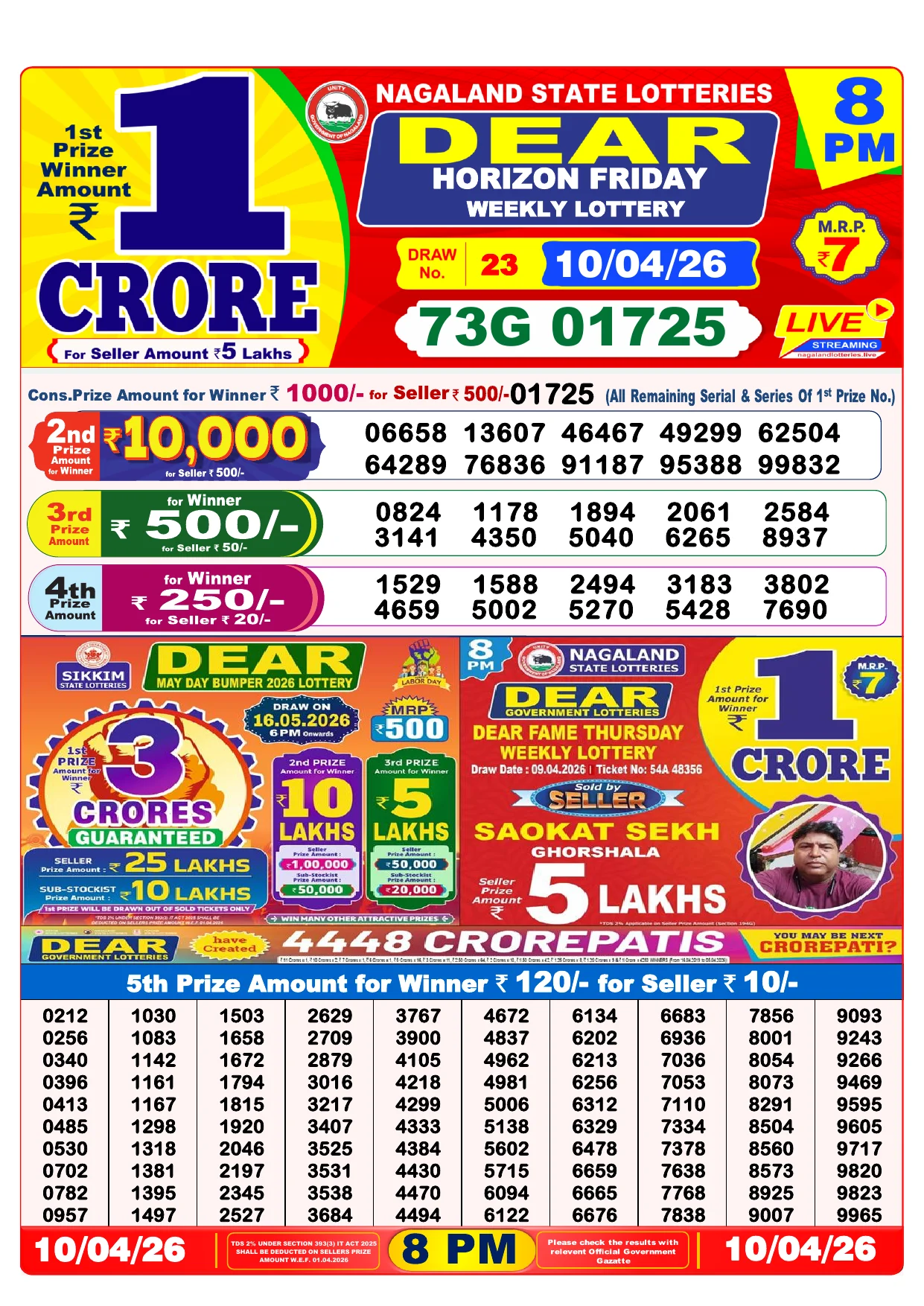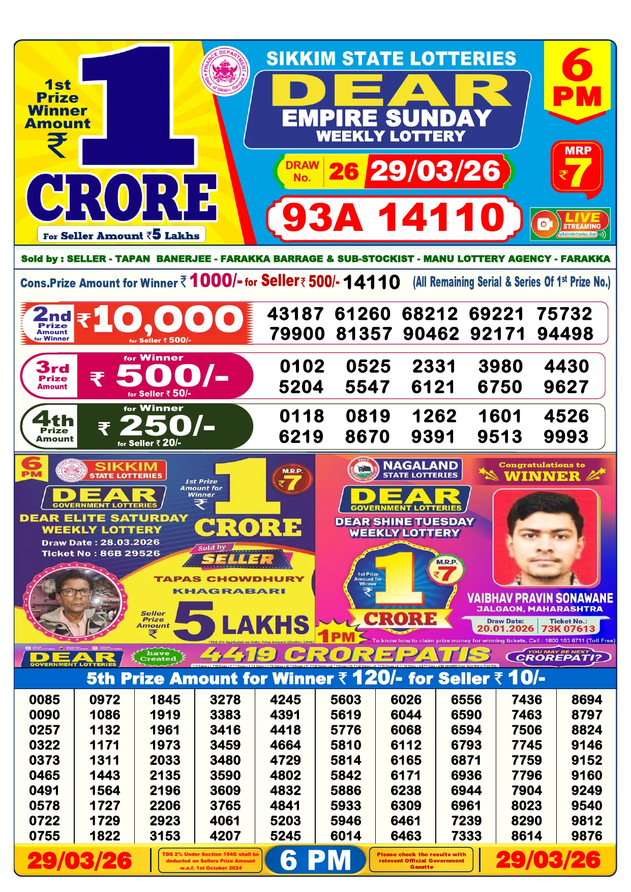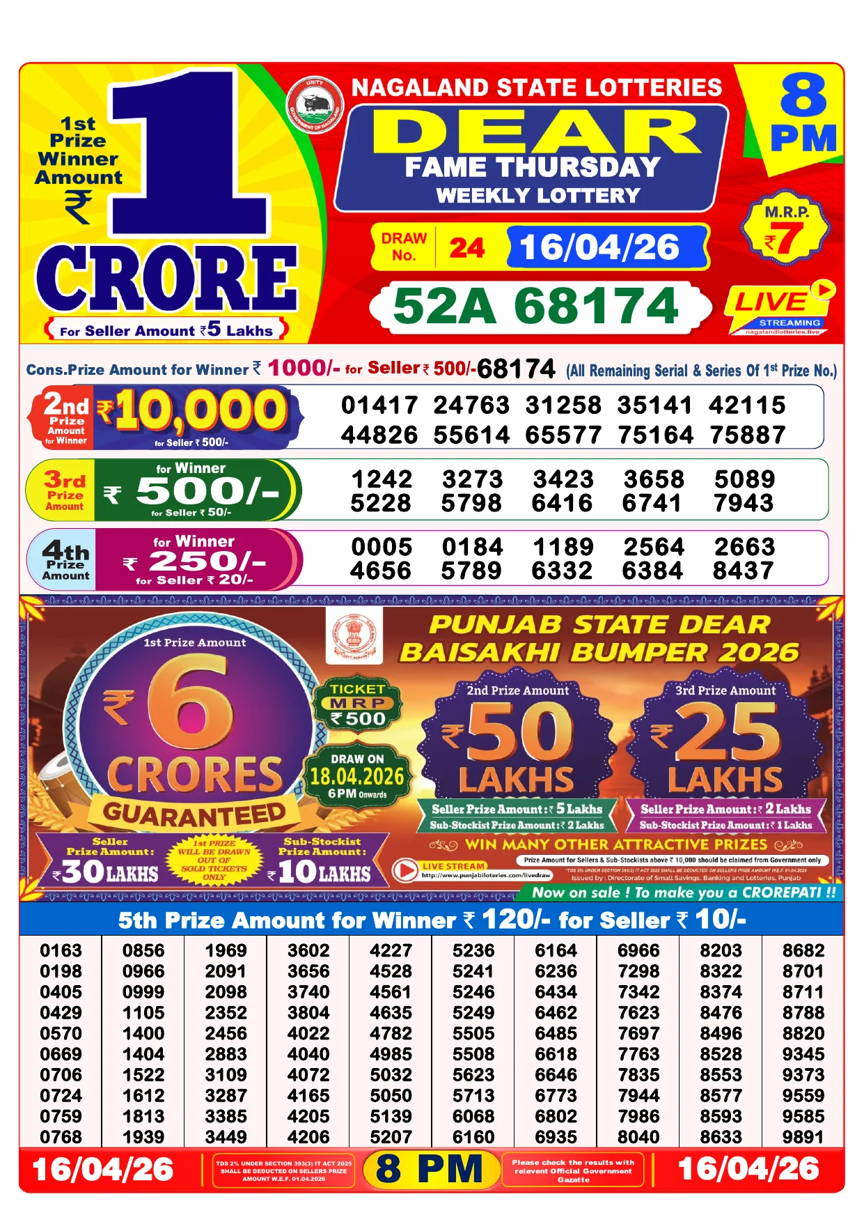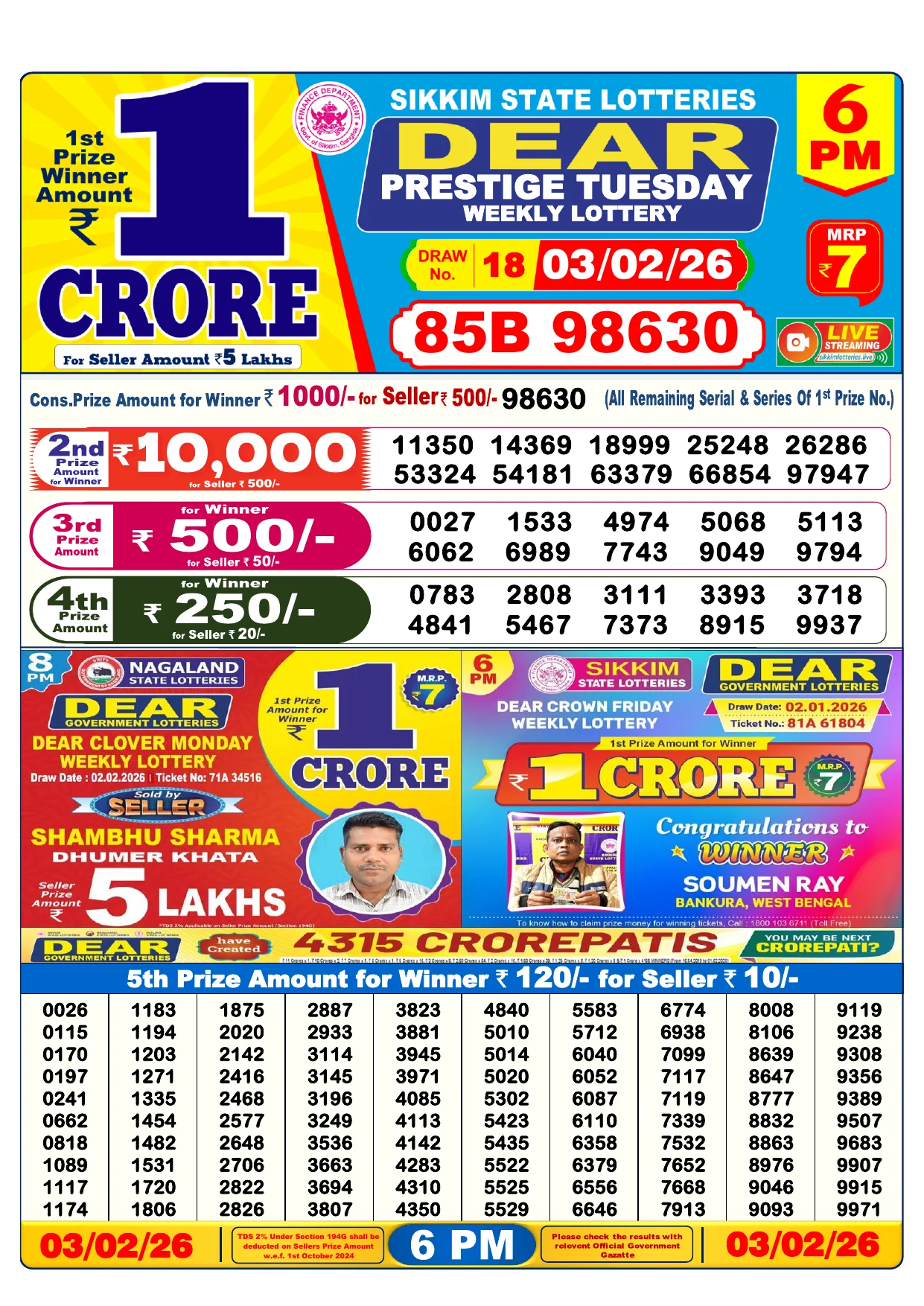 Note: Purchase of lottery using this website is strictly prohibited in the states where lotteries are banned, We are providing only India's leading lottery results, Age 18 years to play online lottery tickets.