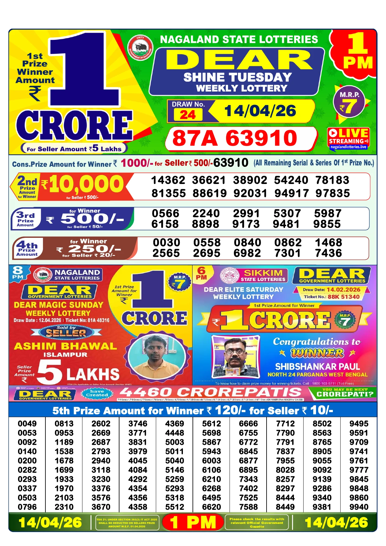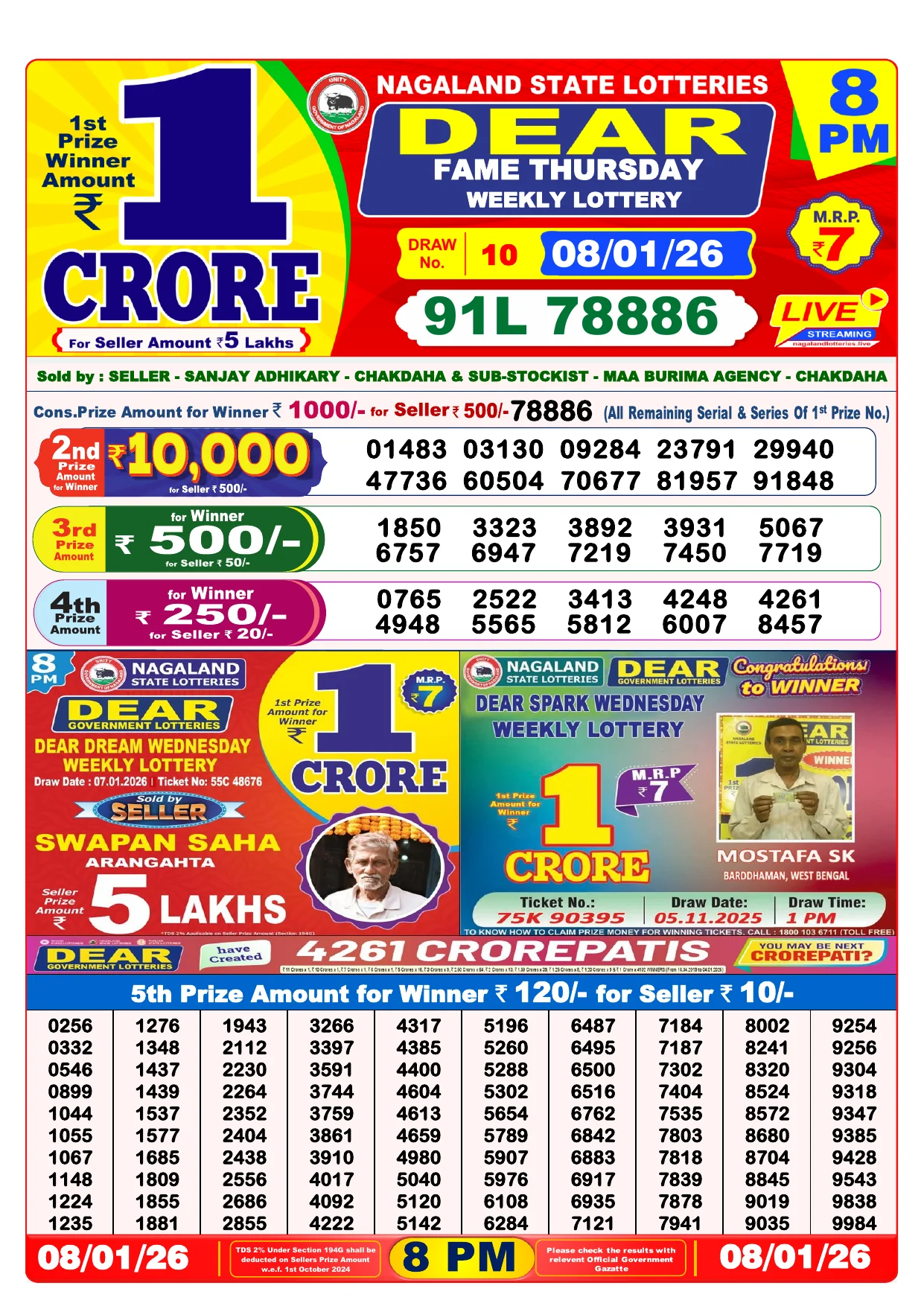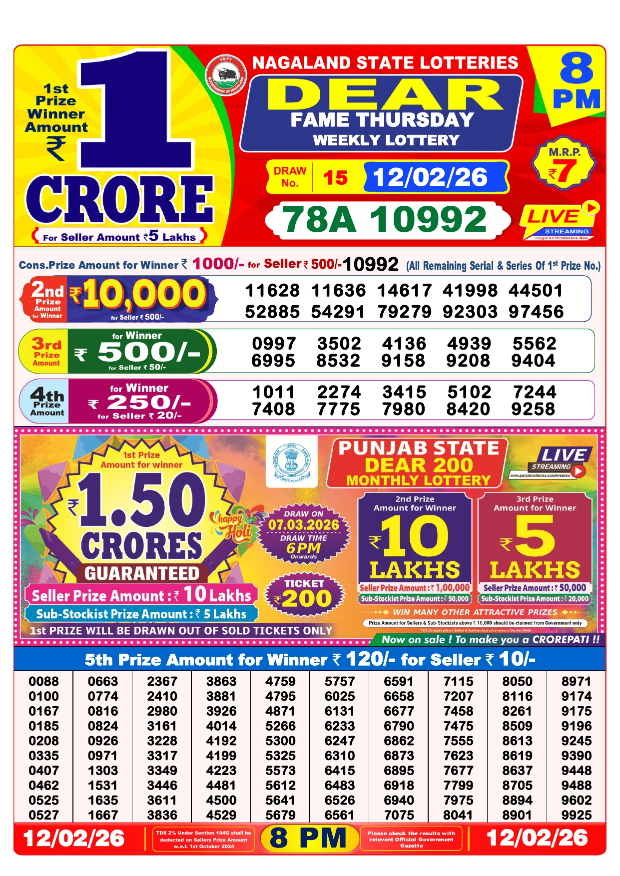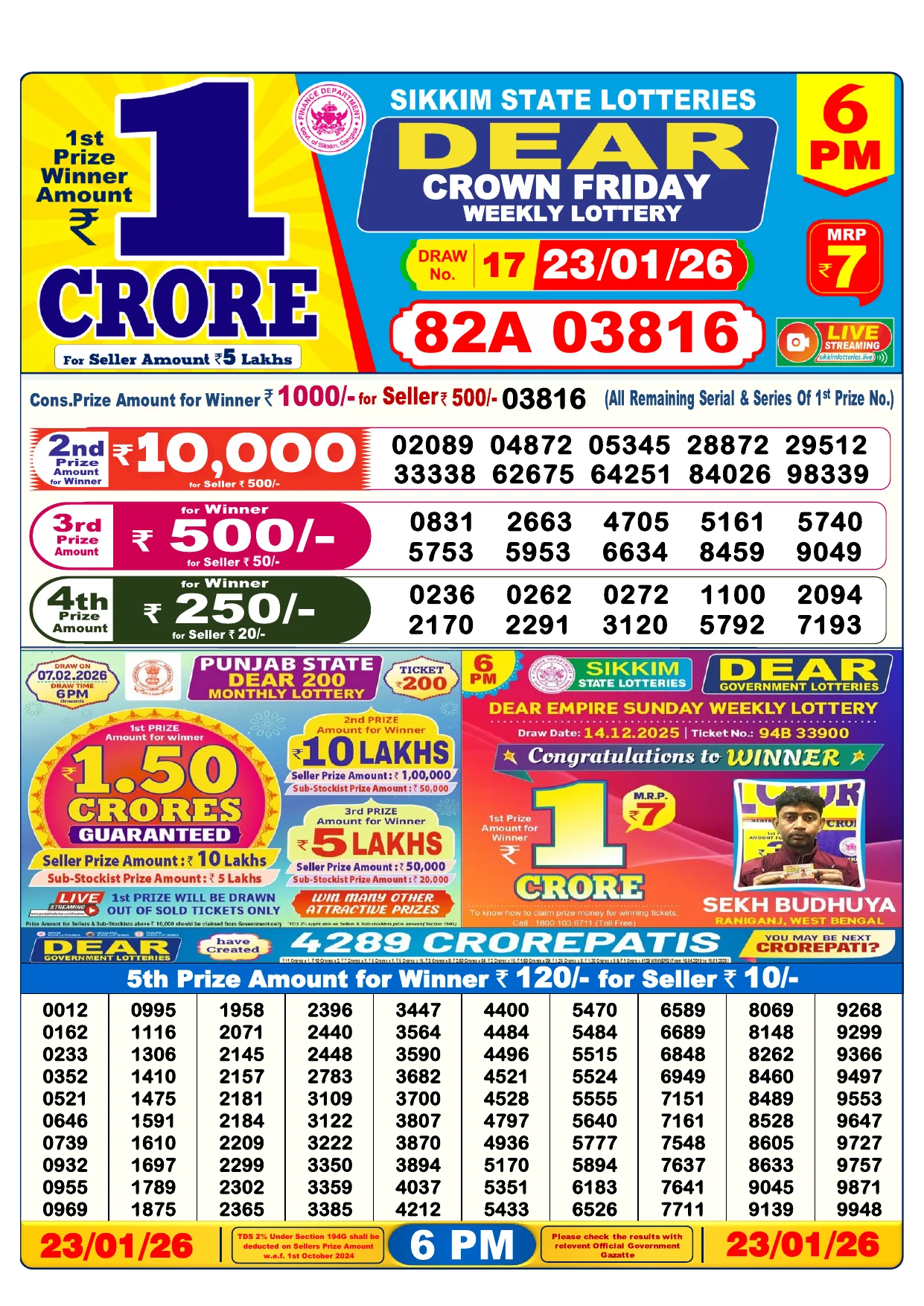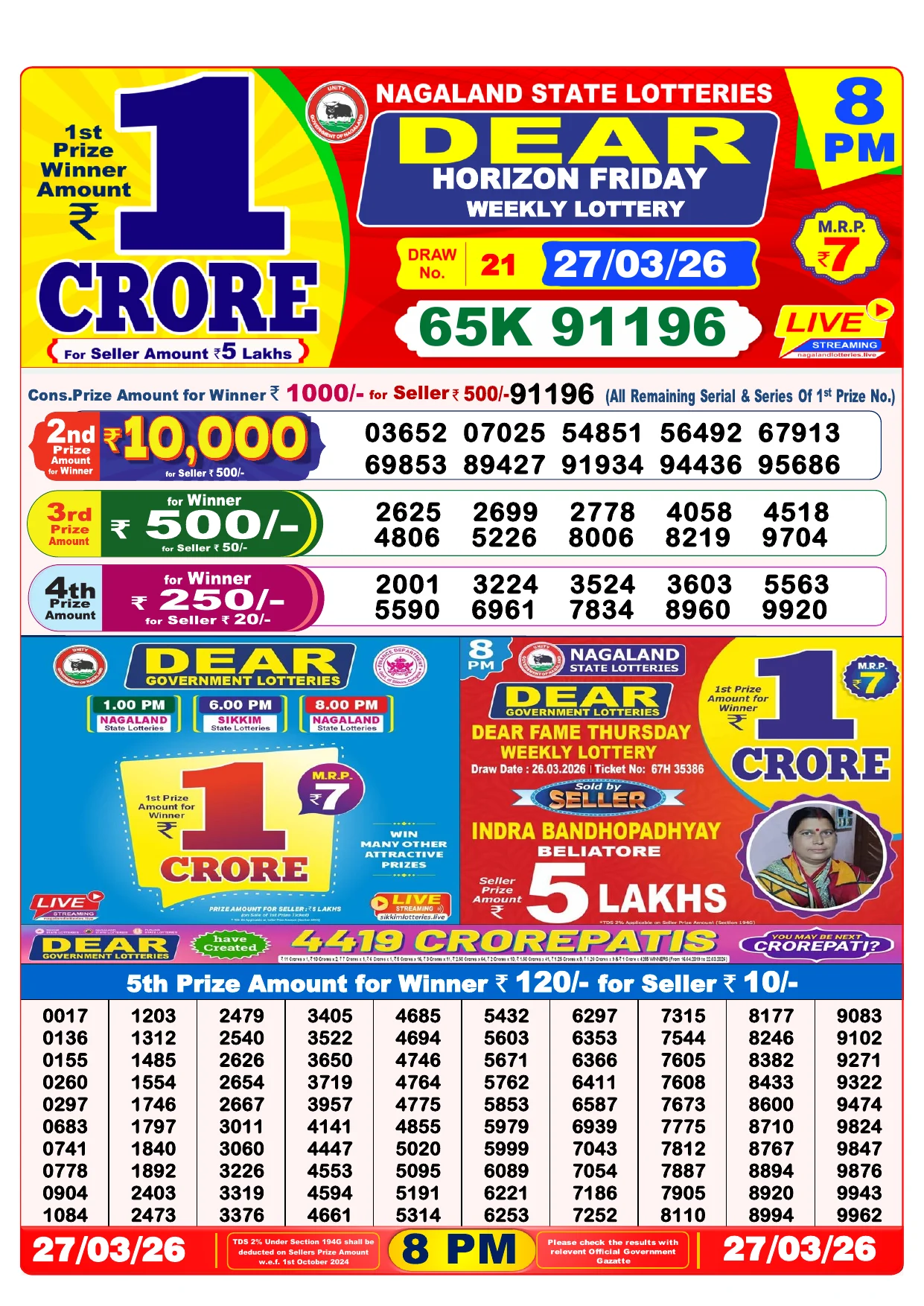 Note: Purchase of lottery using this website is strictly prohibited in the states where lotteries are banned, We are providing only India's leading lottery results, Age 18 years to play online lottery tickets.