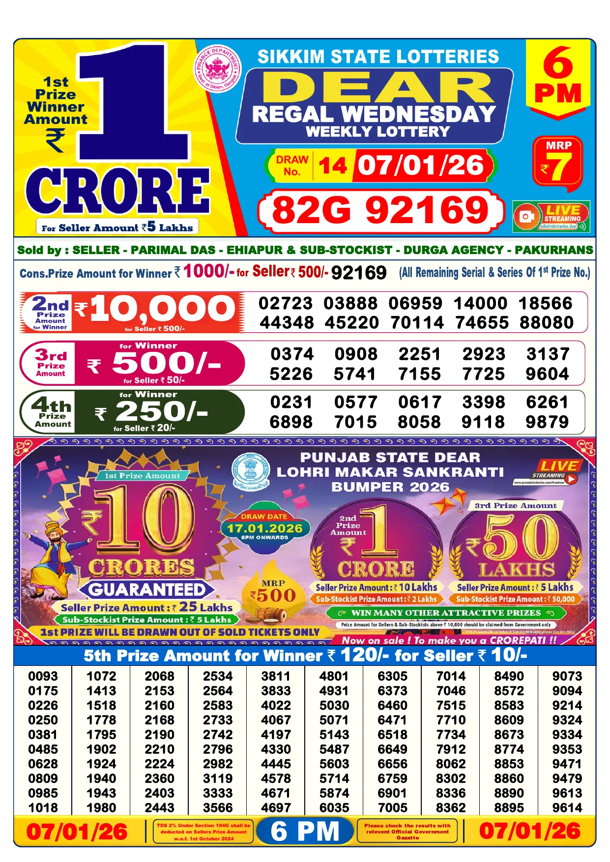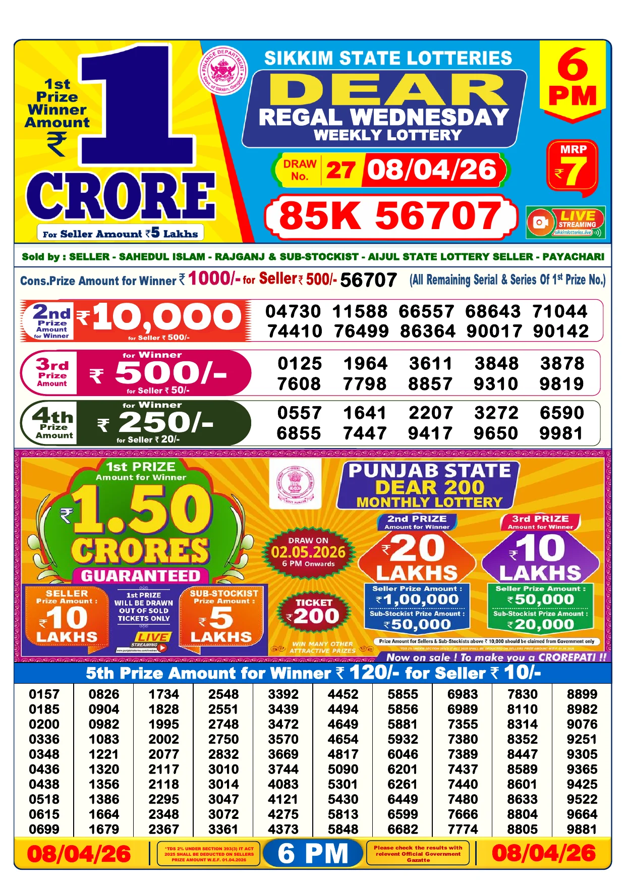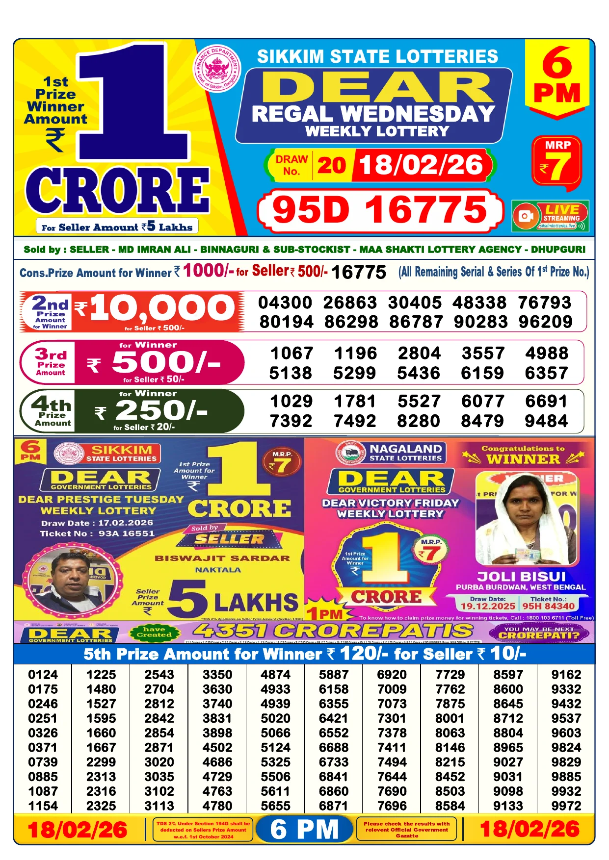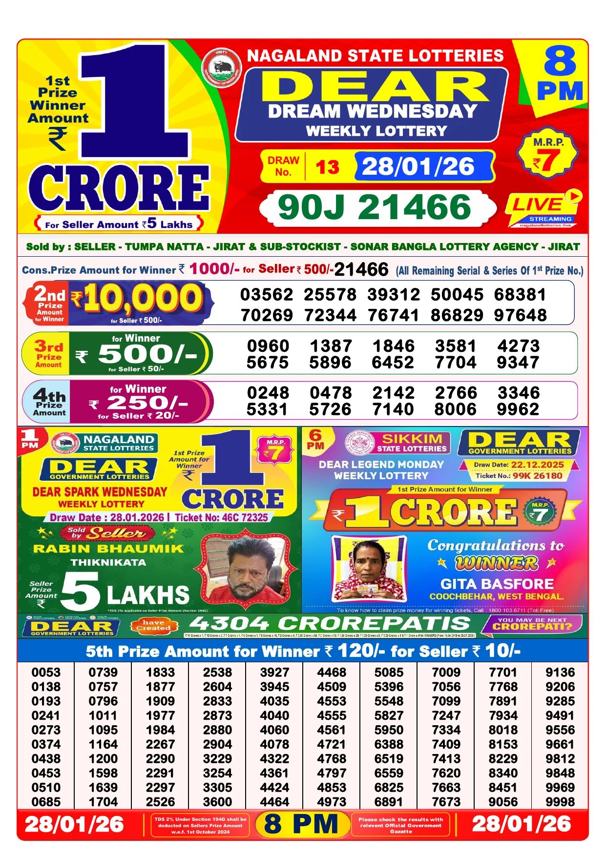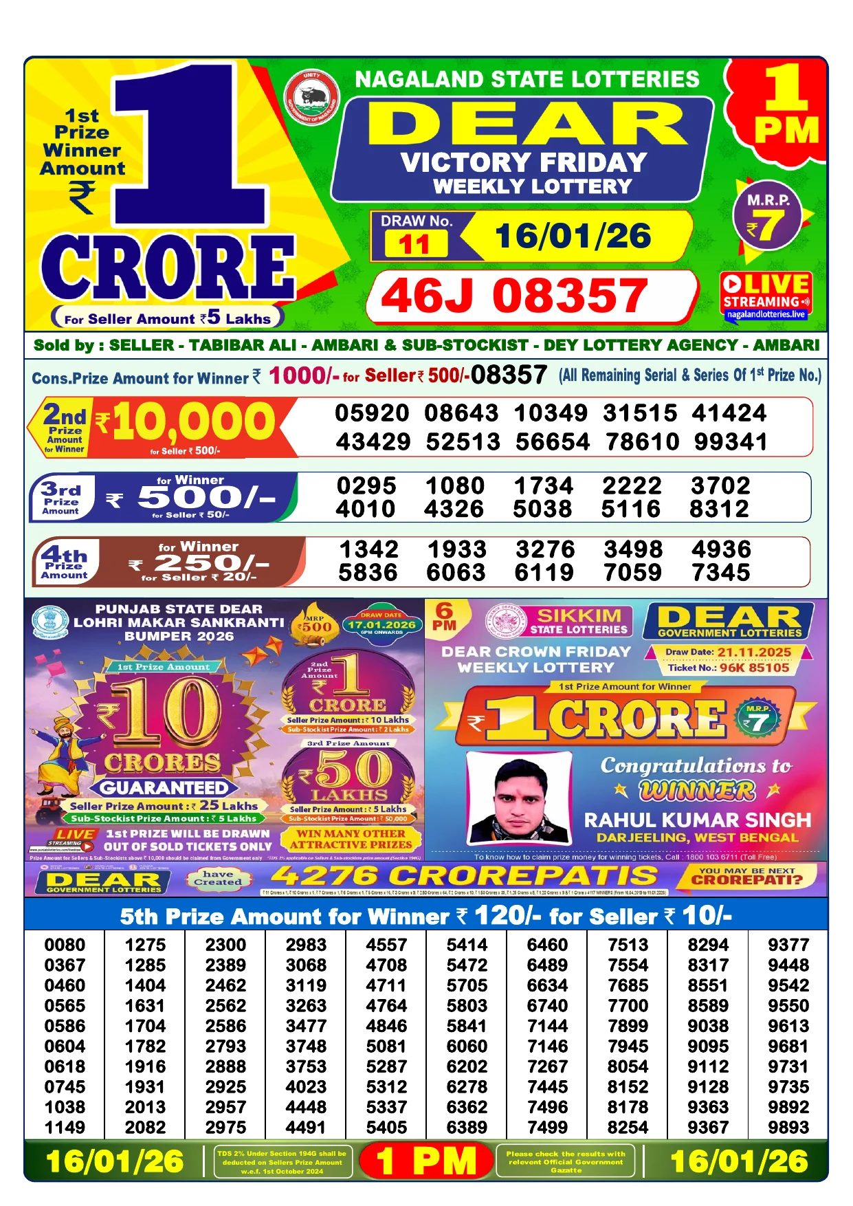 Note: Purchase of lottery using this website is strictly prohibited in the states where lotteries are banned, We are providing only India's leading lottery results, Age 18 years to play online lottery tickets.