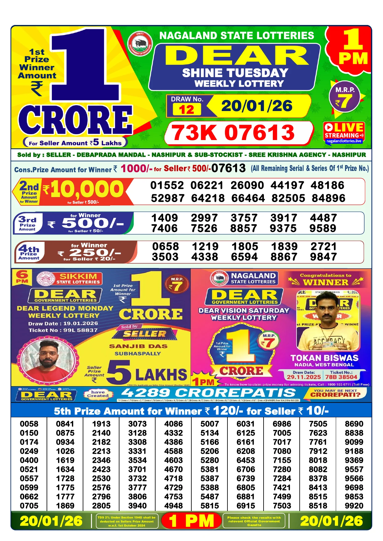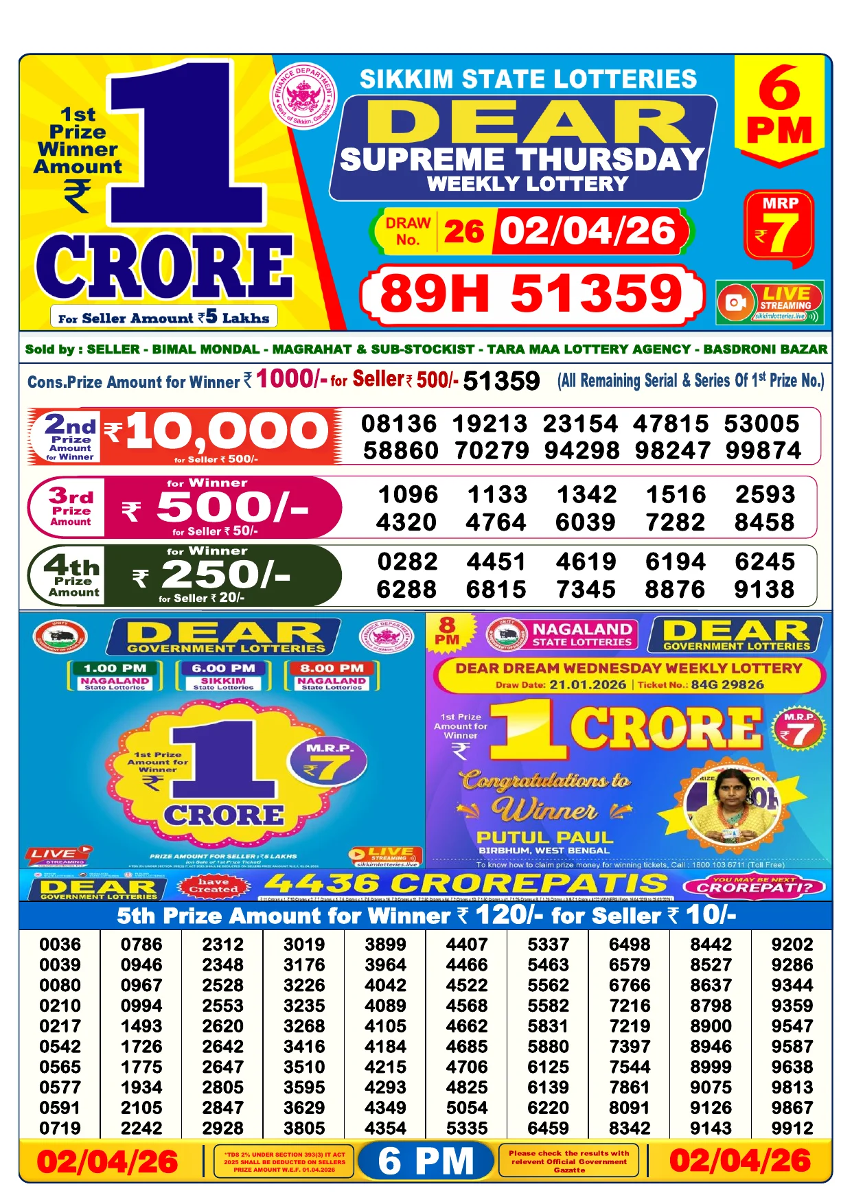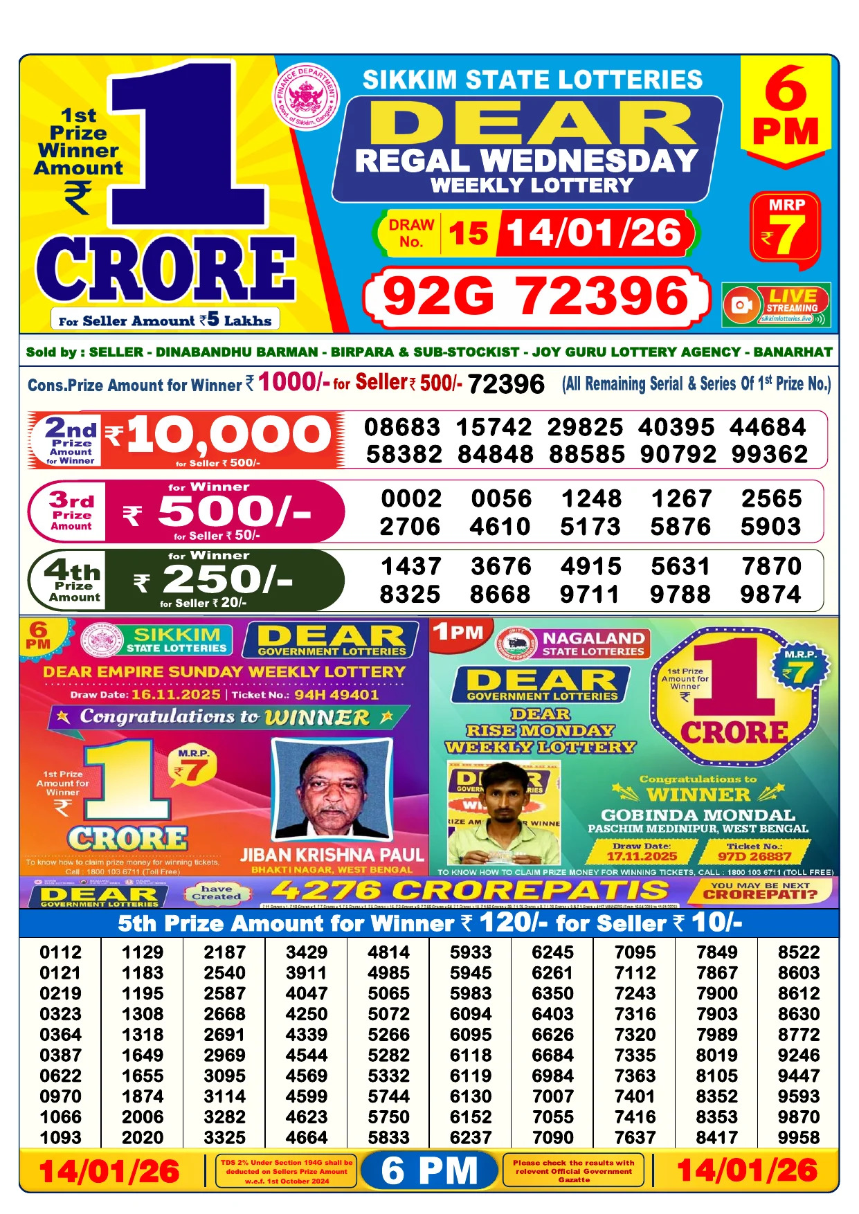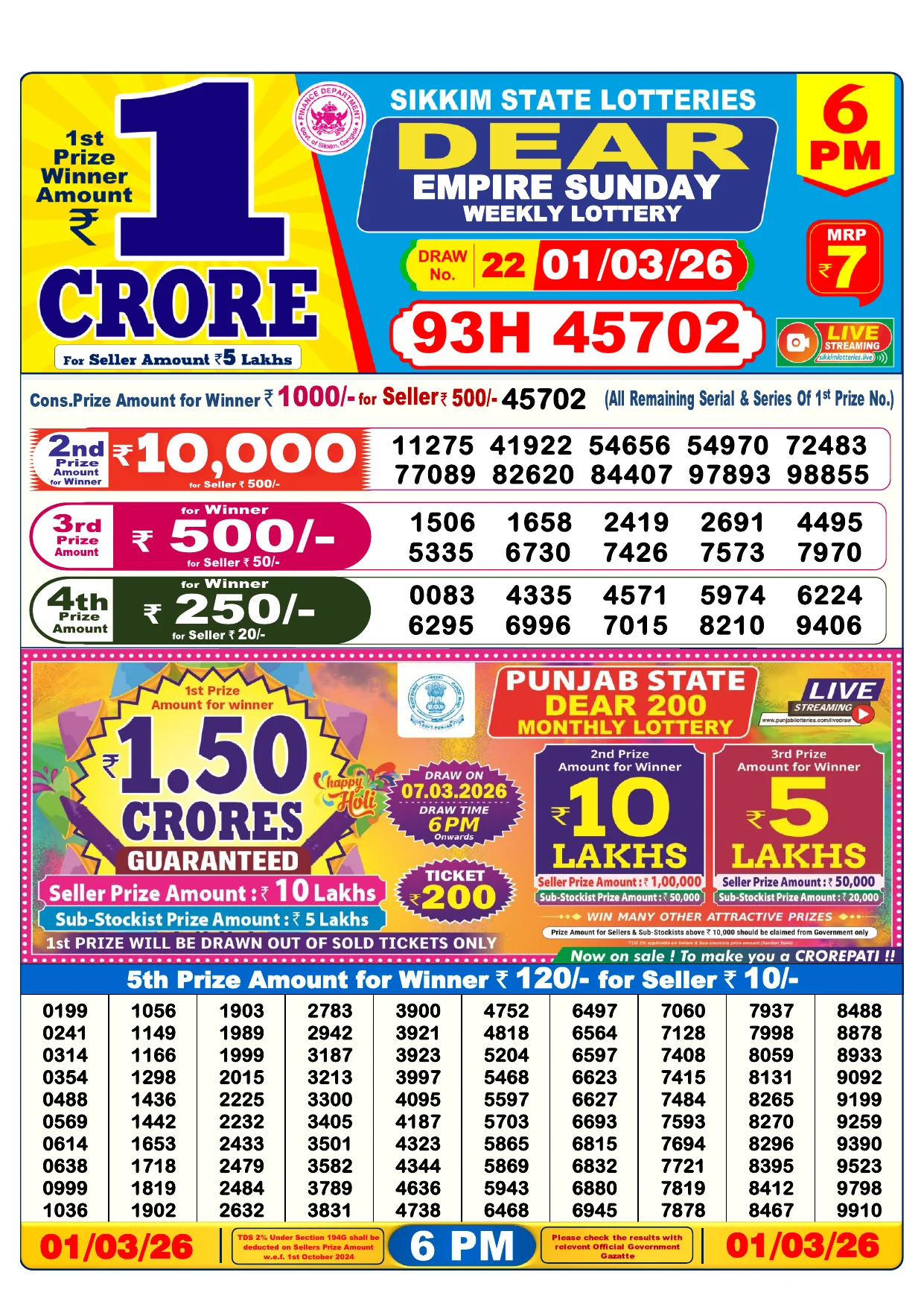Note: Purchase of lottery using this website is strictly prohibited in the states where lotteries are banned, We are providing only India's leading lottery results, Age 18 years to play online lottery tickets.