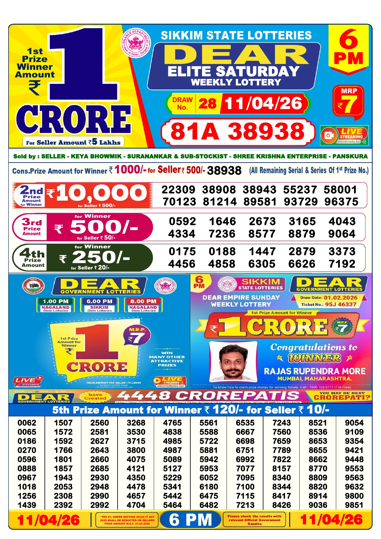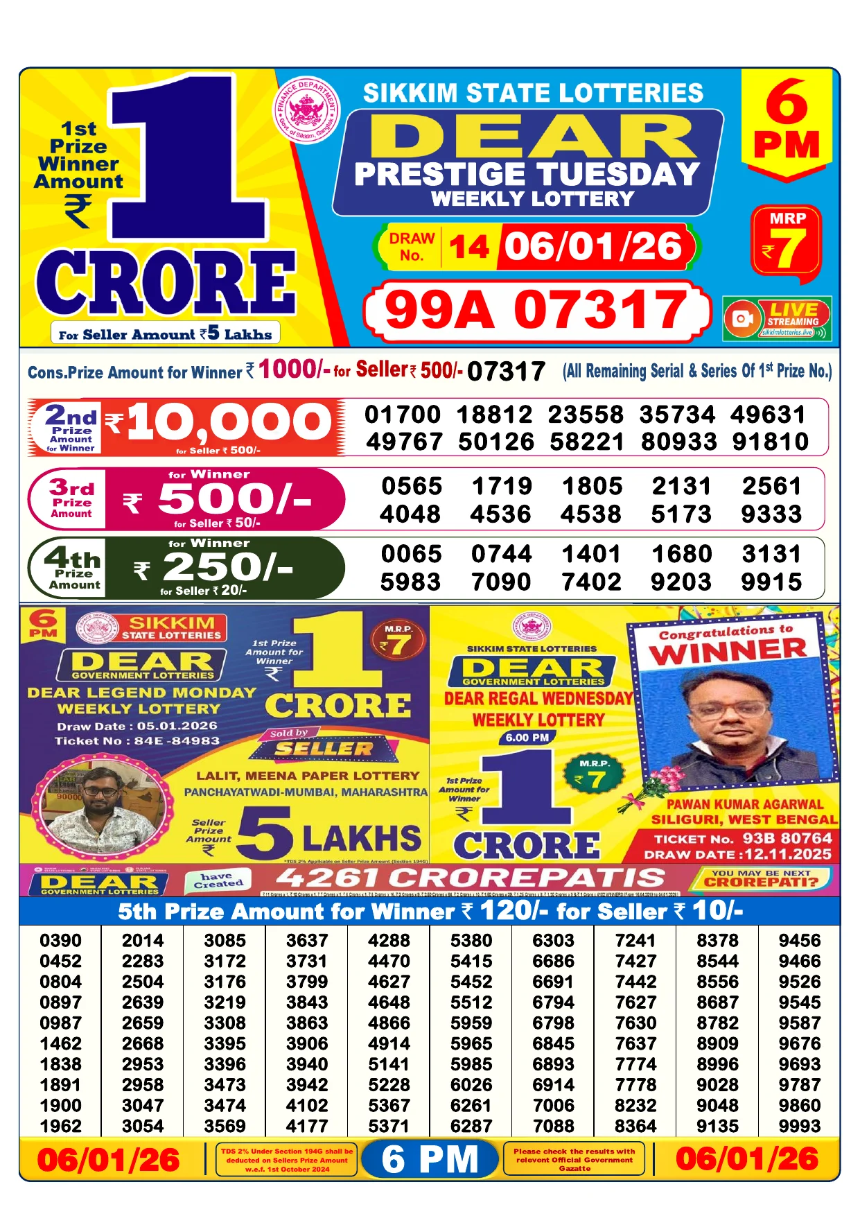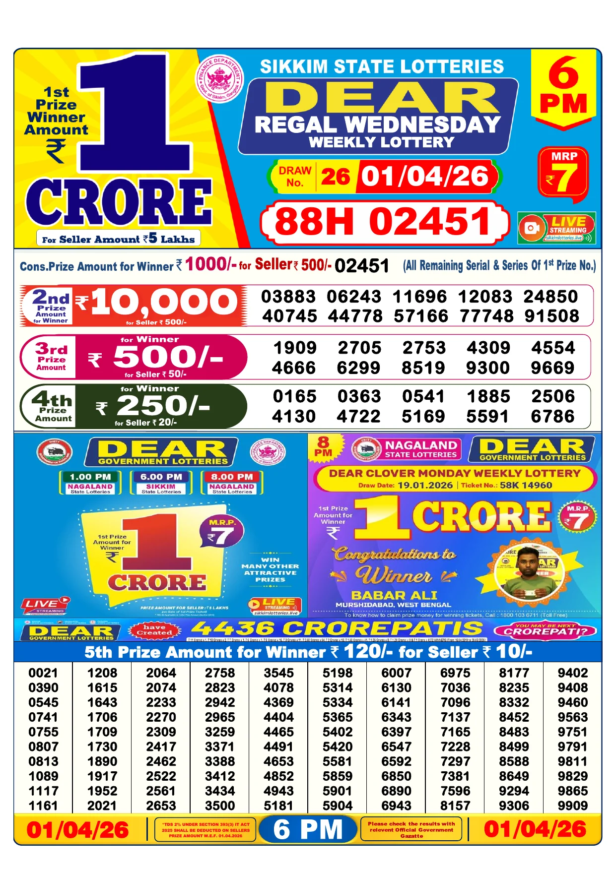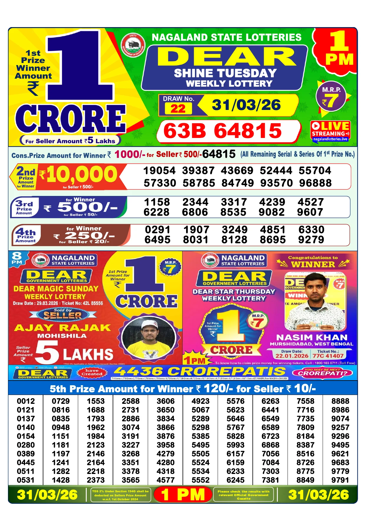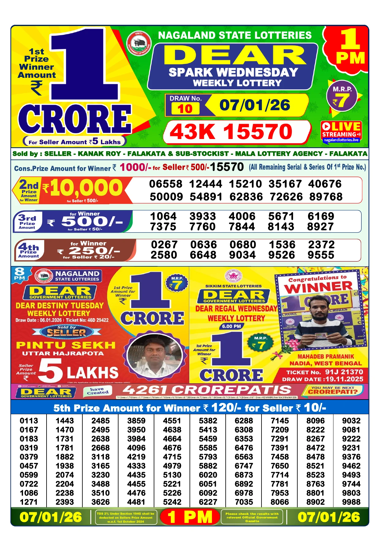 Note: Purchase of lottery using this website is strictly prohibited in the states where lotteries are banned, We are providing only India's leading lottery results, Age 18 years to play online lottery tickets.