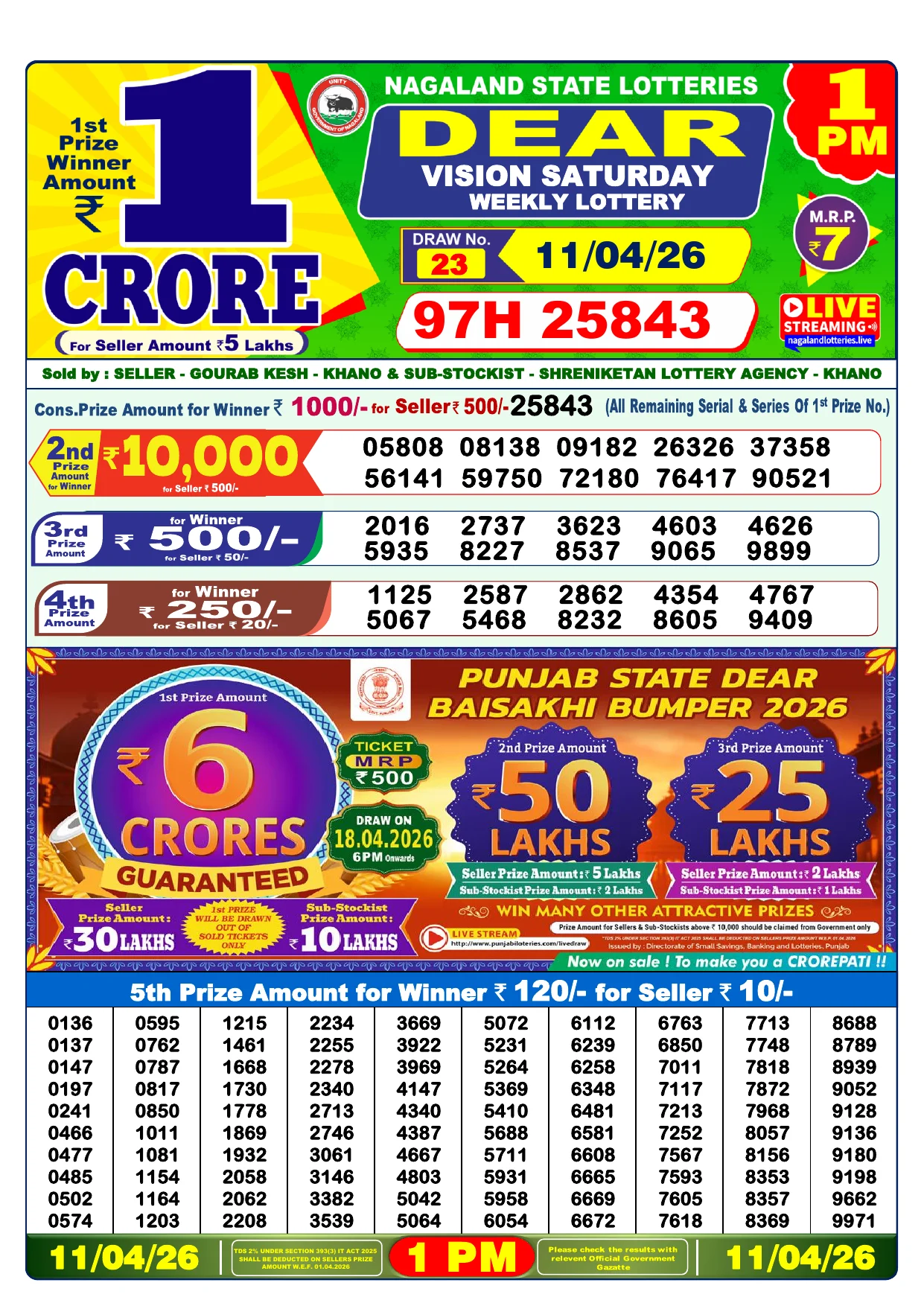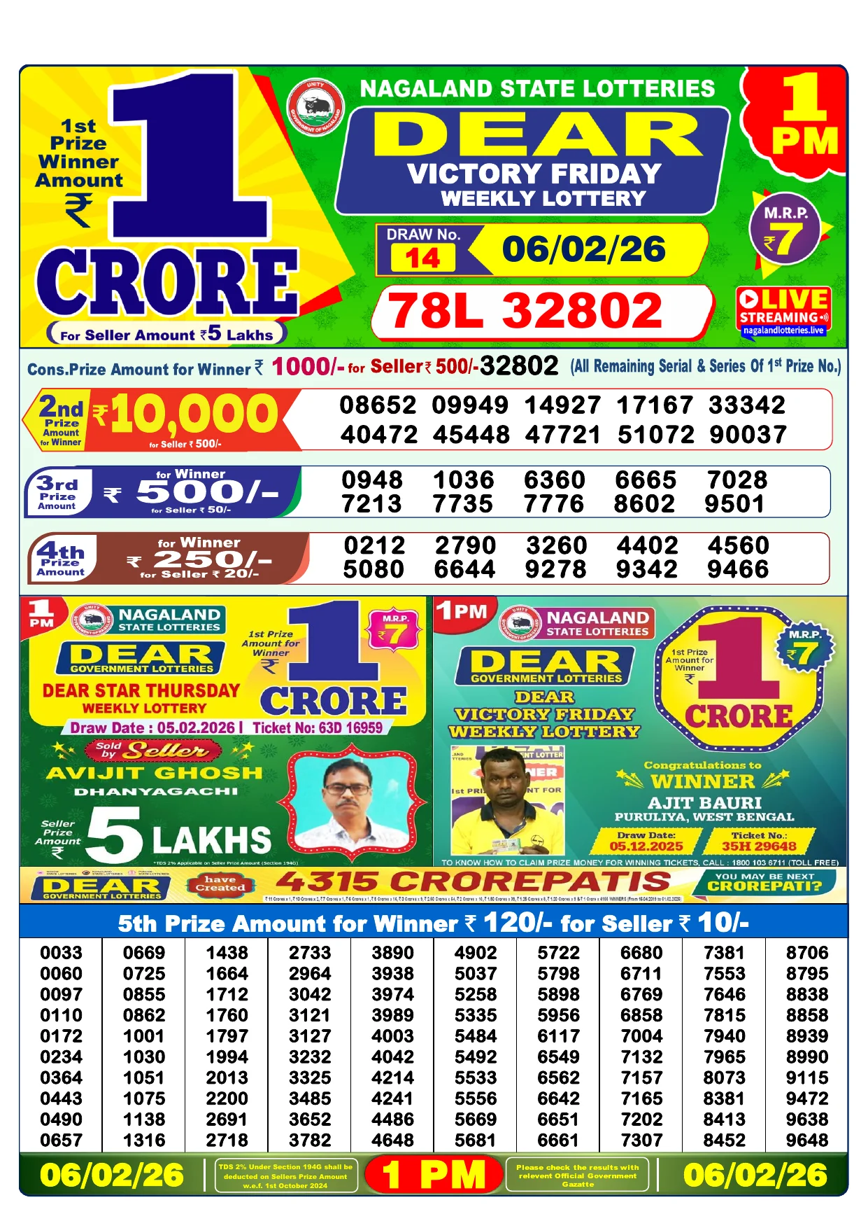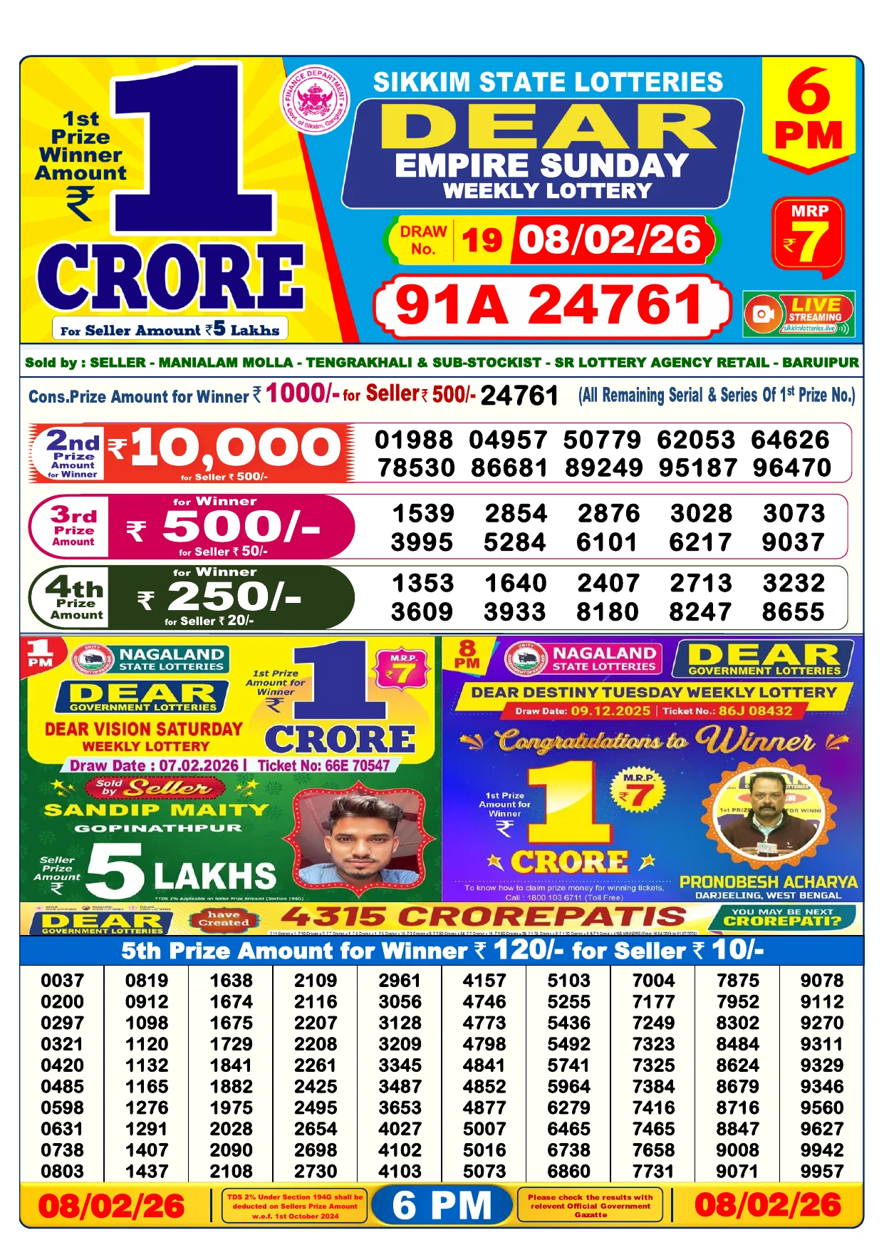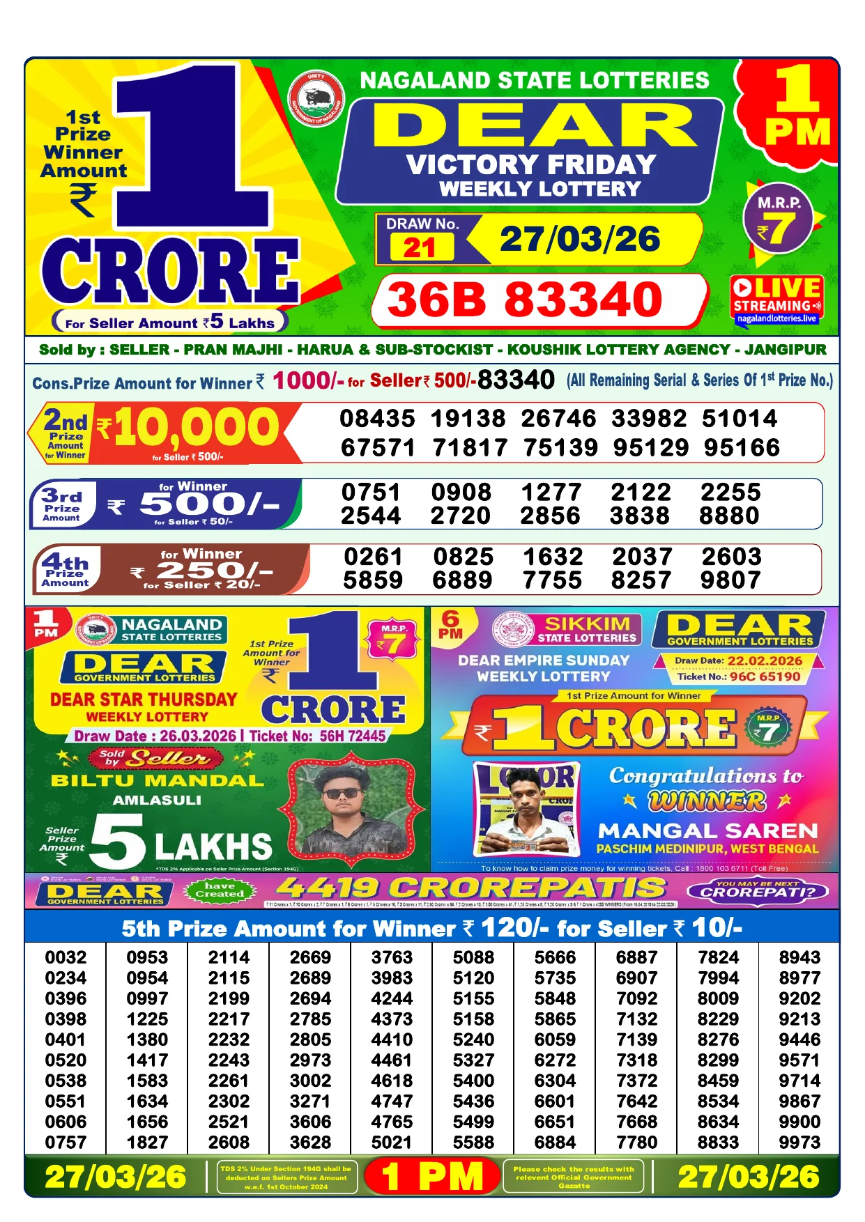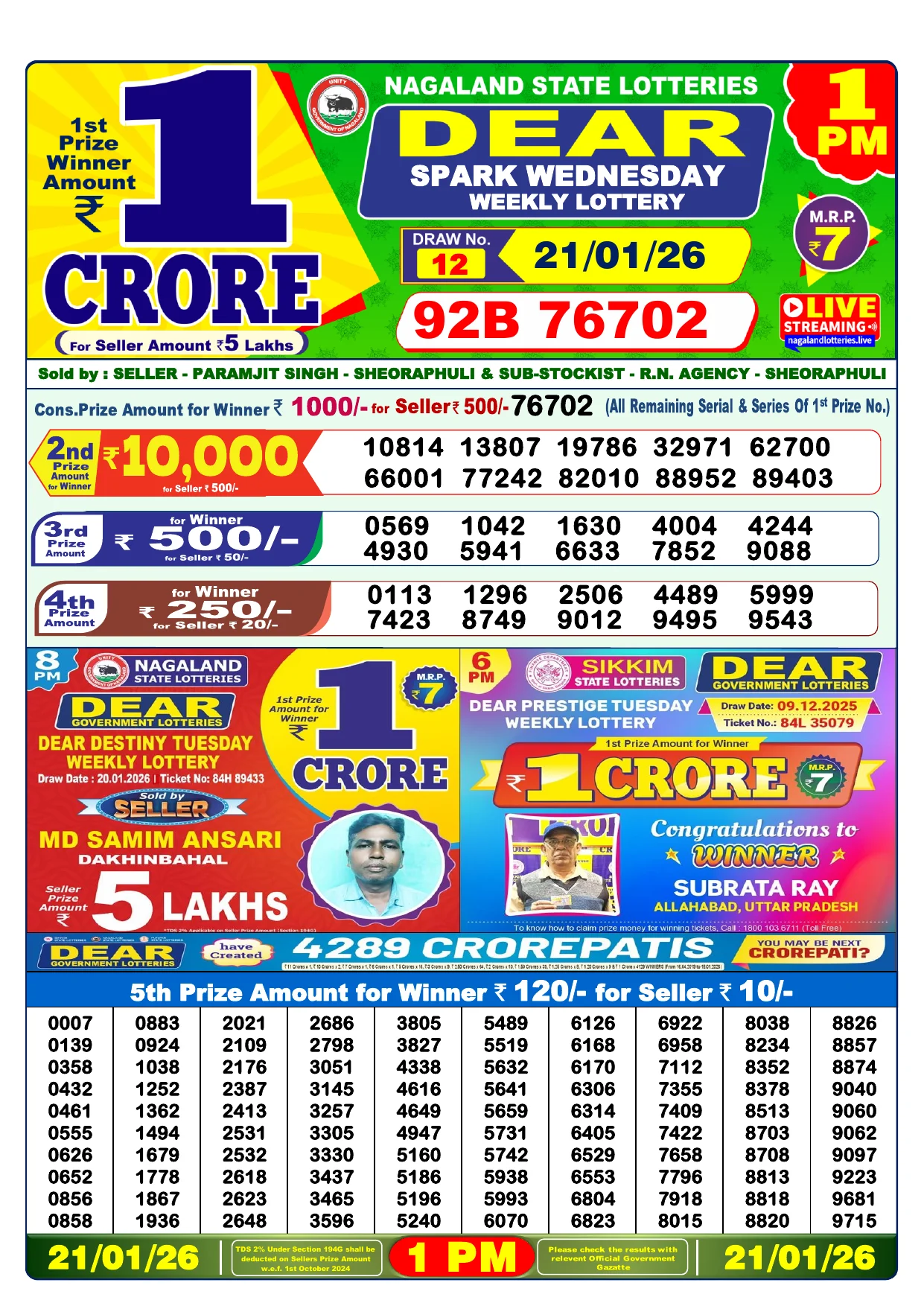 Note: Purchase of lottery using this website is strictly prohibited in the states where lotteries are banned, We are providing only India's leading lottery results, Age 18 years to play online lottery tickets.