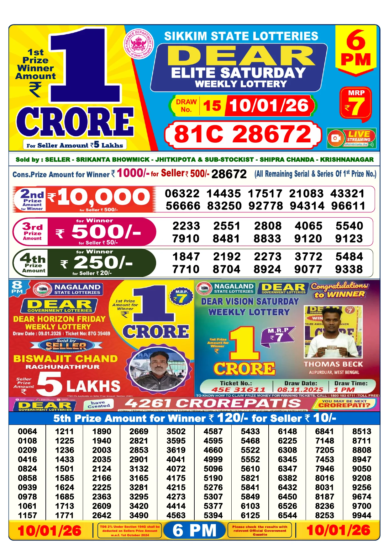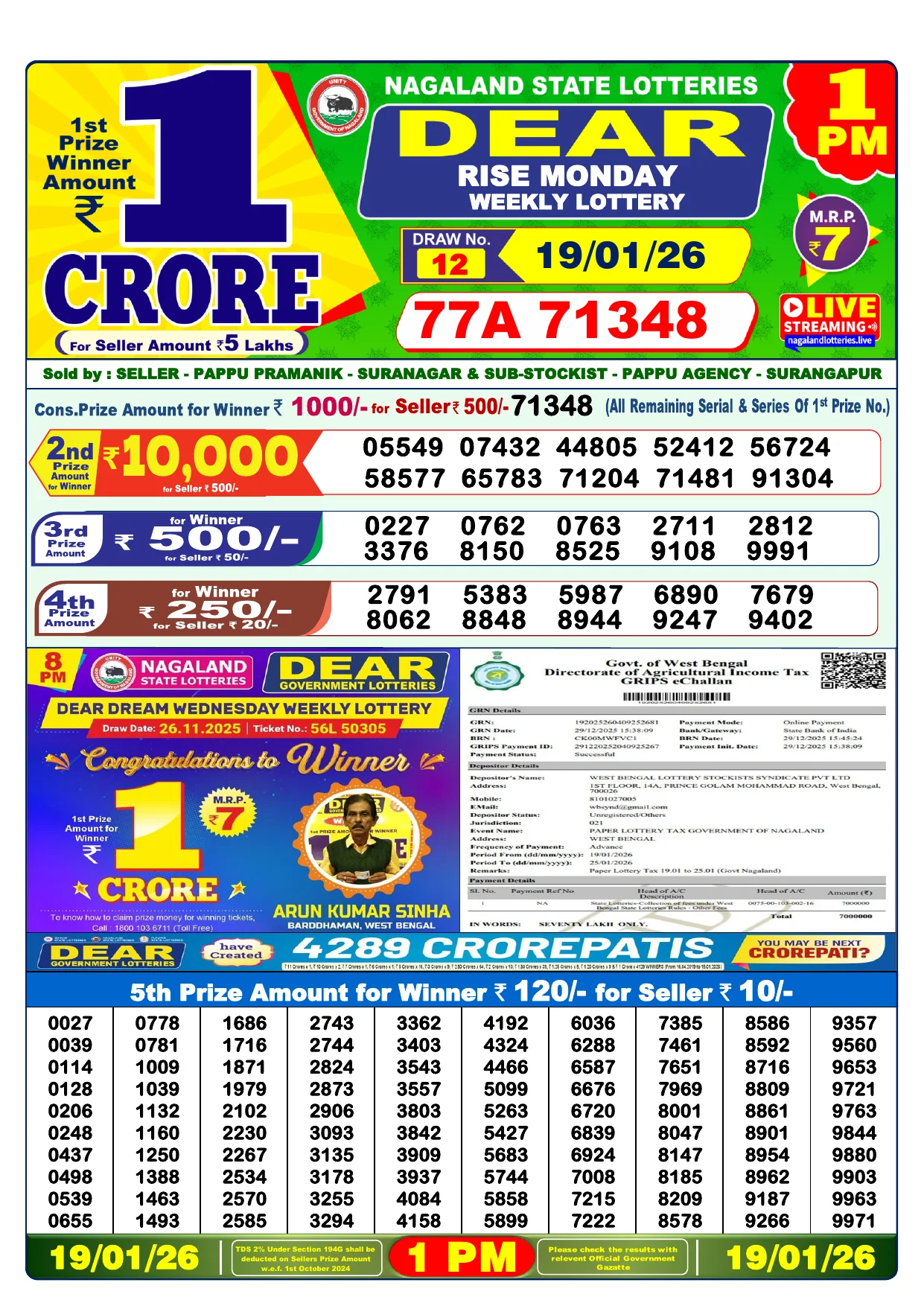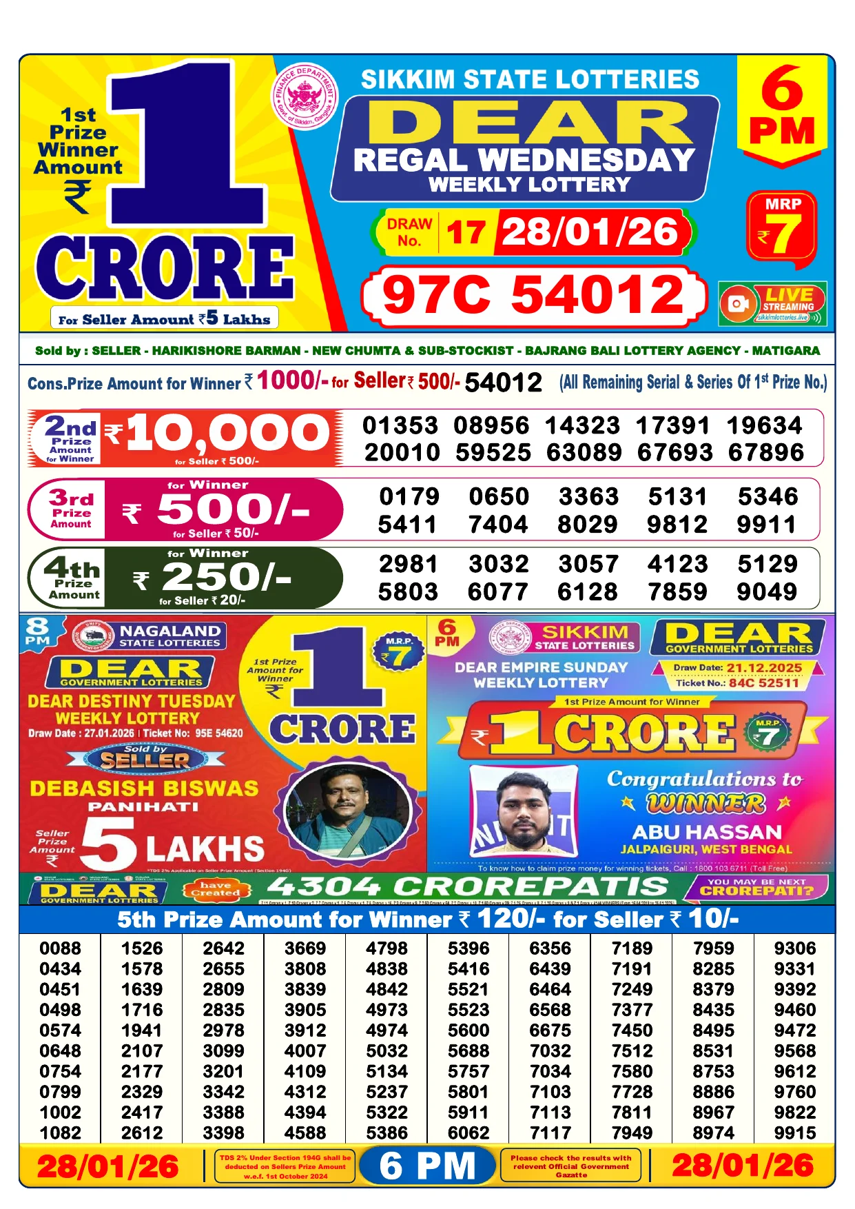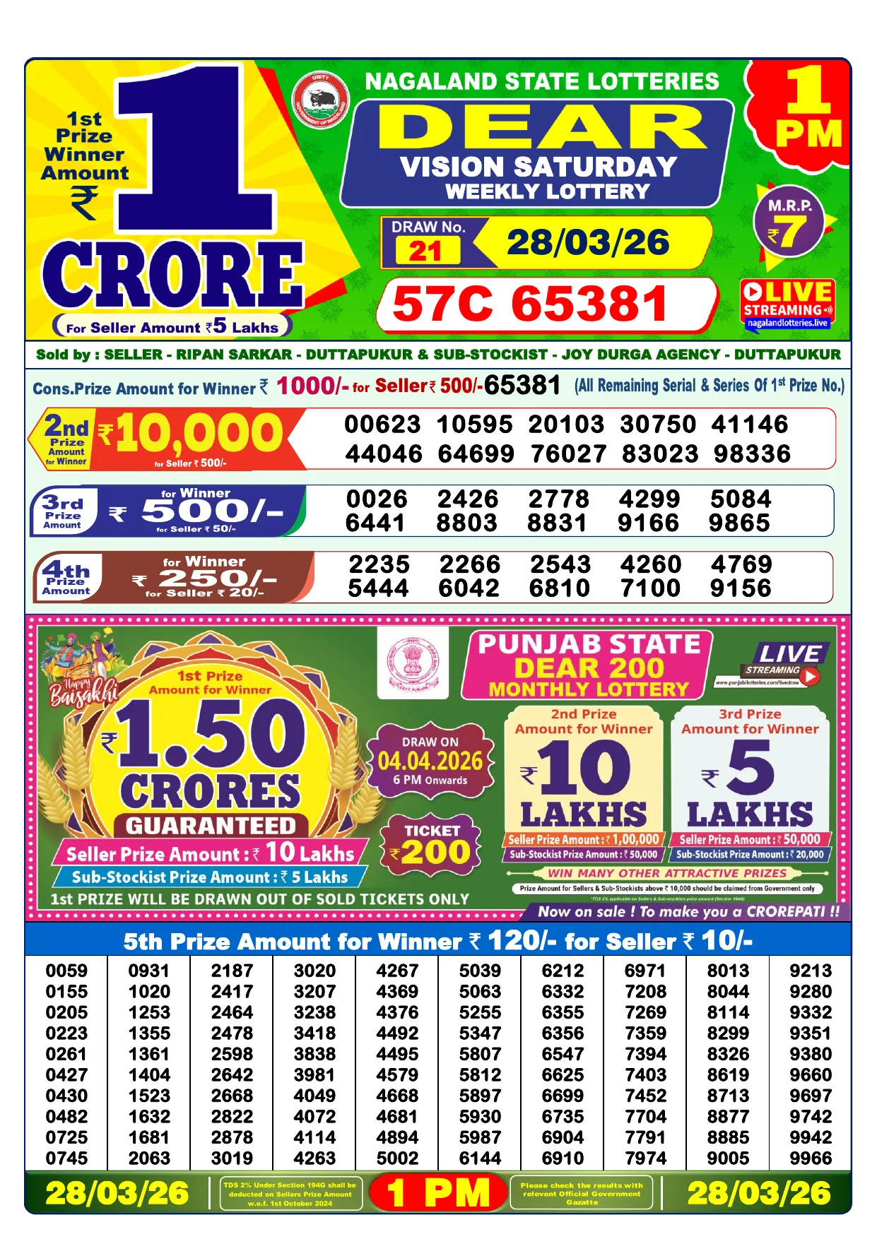 Note: Purchase of lottery using this website is strictly prohibited in the states where lotteries are banned, We are providing only India's leading lottery results, Age 18 years to play online lottery tickets.