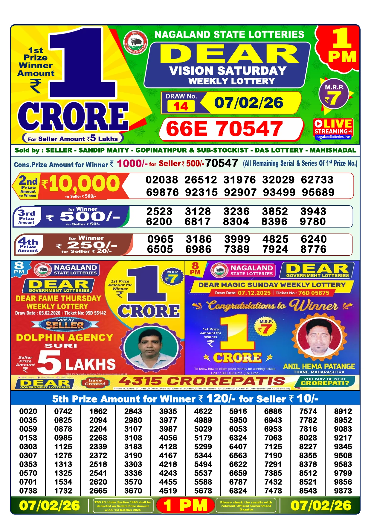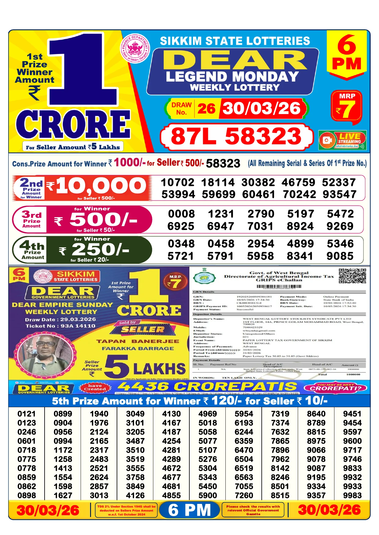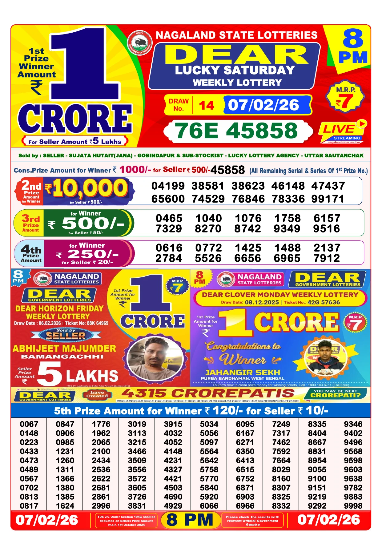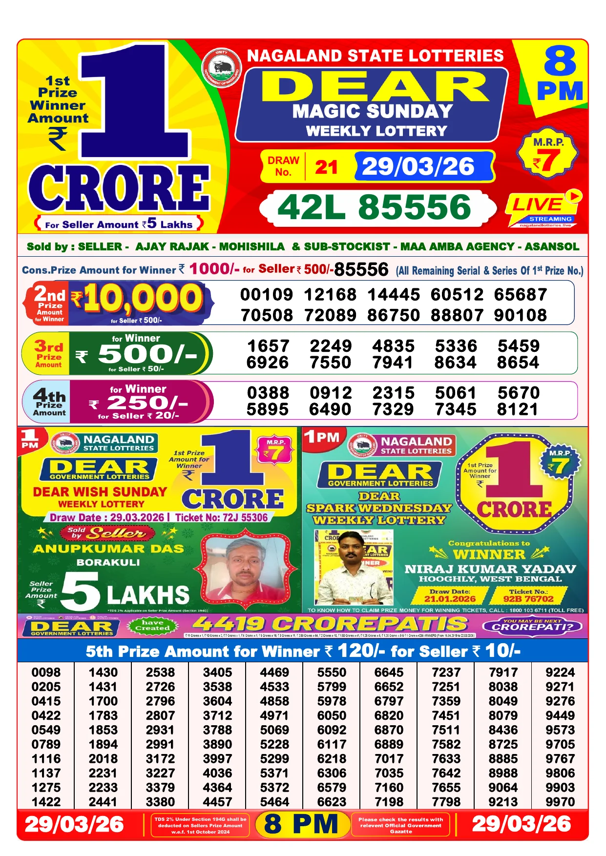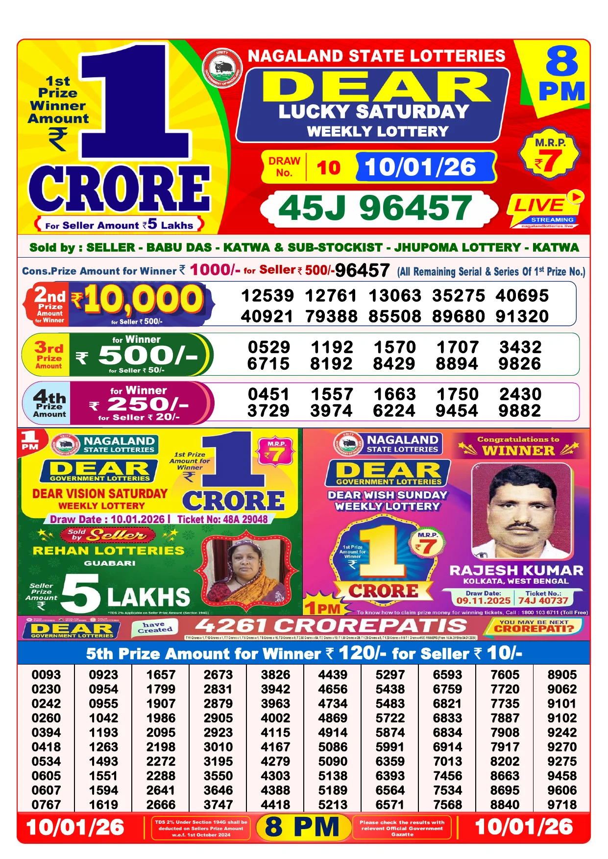 Note: Purchase of lottery using this website is strictly prohibited in the states where lotteries are banned, We are providing only India's leading lottery results, Age 18 years to play online lottery tickets.