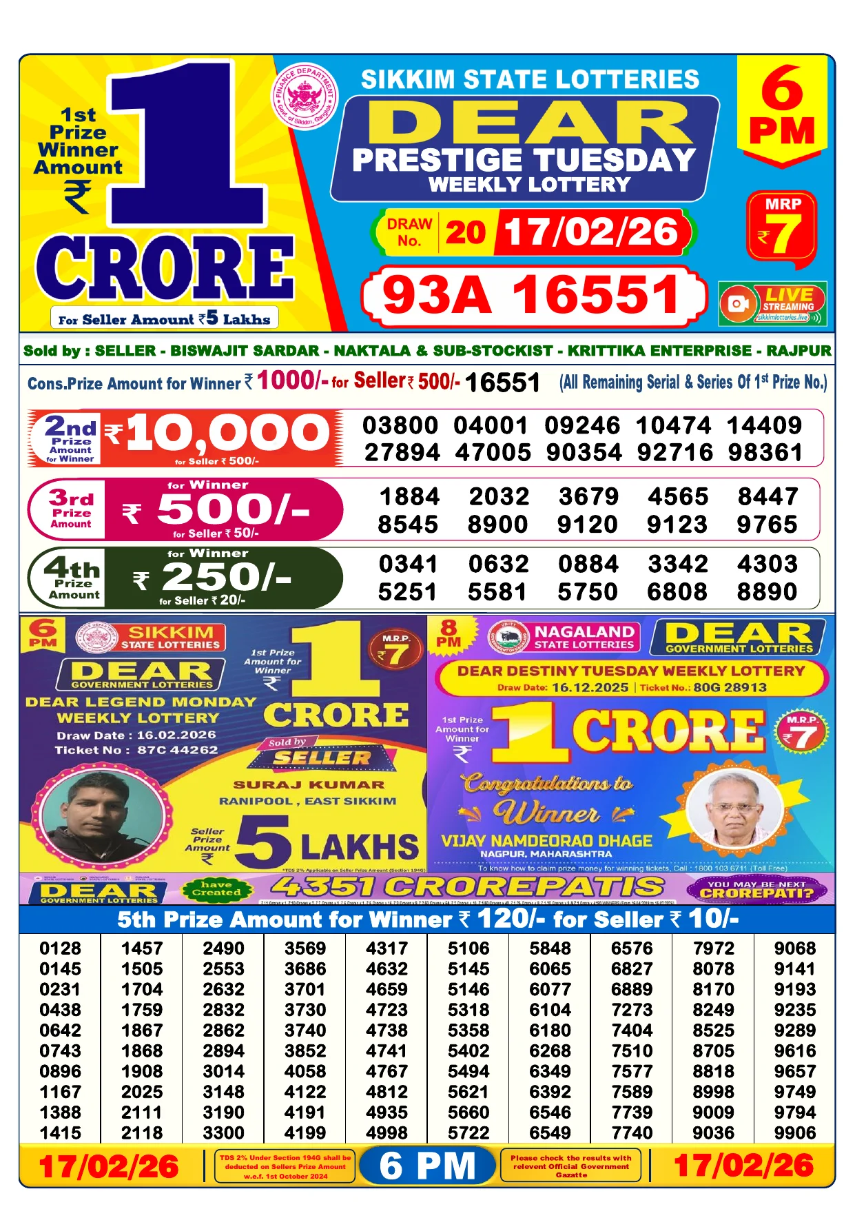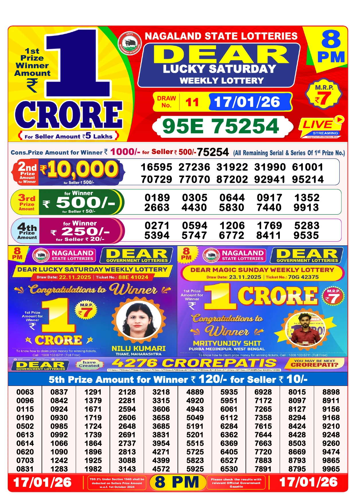 | Nagaland State Lottery Sambad Result | Lottery Sambad Today Result 6:00 PM |